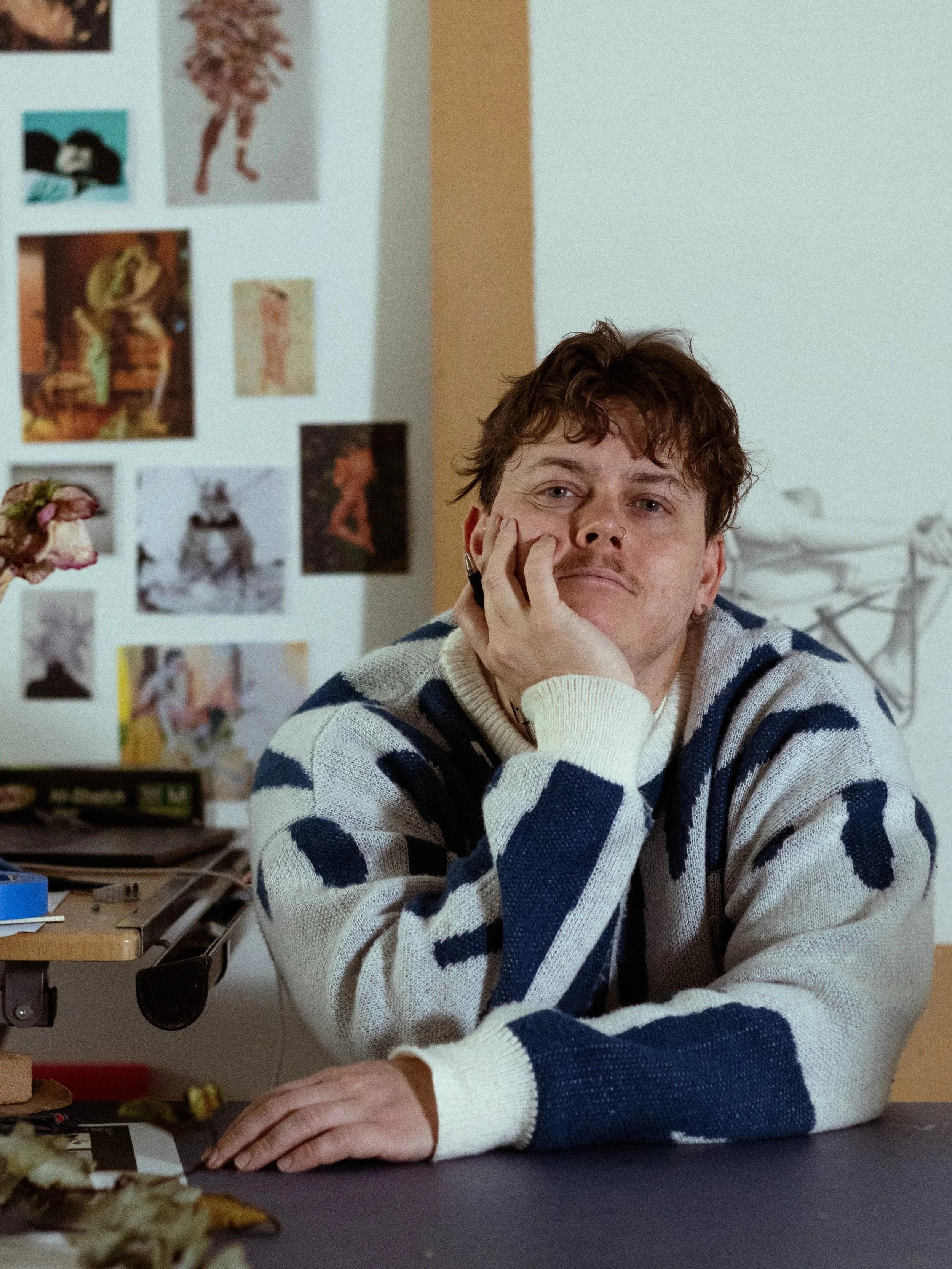 Joshua Brew (born 1993) is an emerging Australian artist working on Whadjuk Noongar country (Perth, Western Australia), exploring contemporary masculinity through narrative and symbolism. Drawing on lived experience, his work examines the tension between vulnerability and strength, responding to the resurgence of hyper- and toxic masculinities in contemporary culture.